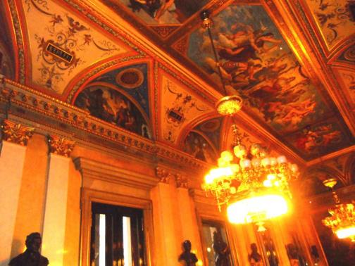 Odpoledne exkurze pokračovala komentovanou prohlídkou historické budovy Národního divadla. Zlatou kapličku jsme prošli od sklepa, kde jsou umístěné základní kameny, až po vyhlídkovou terasu nad Národní třídou. Poté ještě následovala prohlídka nedalekého kancelářského a obchodního komplexu Quadrio. Před Quadriem jsme zhlédli novou sochu Franze Kafky od sochaře Davida Černého. Její zmenšeninu jsme týž den viděli v atriu zmíněné budovy Danube House.