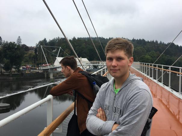 Hlavním cílem exkurze ale byla žhavá současnost, stavba lávky přes Václavský jez. Autorem projektu je písecký rodák Ing. arch. Josef Pleskot. Z konstrukčního hlediska se jedná o lávku lomenou, kdy je ocelová konstrukce částečně visutá a částečně zavěšená. Zasvěcený výklad o stavbě i o projektu nám podal hlavní manager projektu Ing. Milan Hromádka, také rodák z Písku a hlavně absolvent naší průmyslovky z roku 2003. Dobrá inspirace na úvod závěrečného ročníku, že?