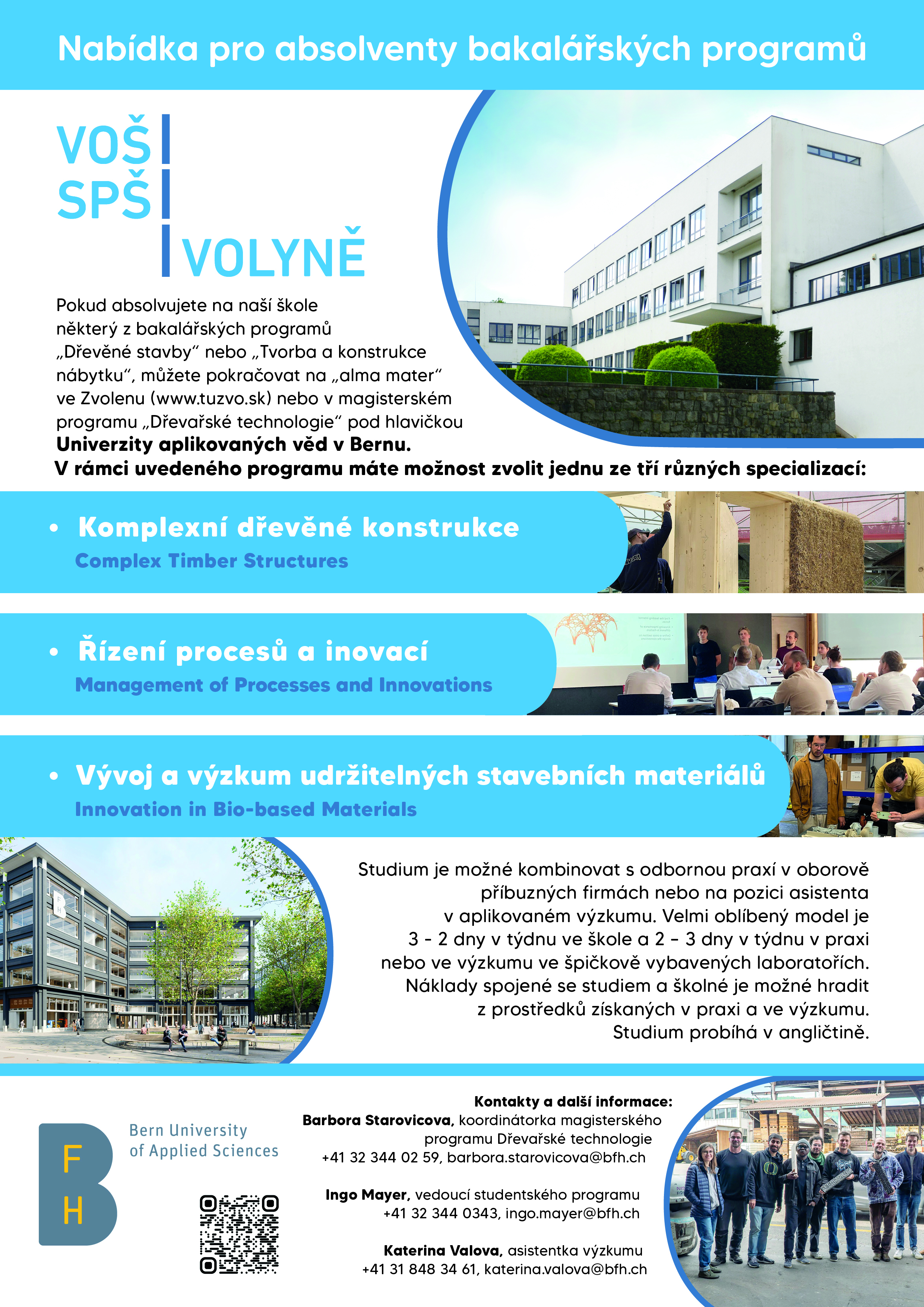 Nabídka pro absolventy bakalářských programů VOŠ Volyně pod hlavičkou TU Zvolen